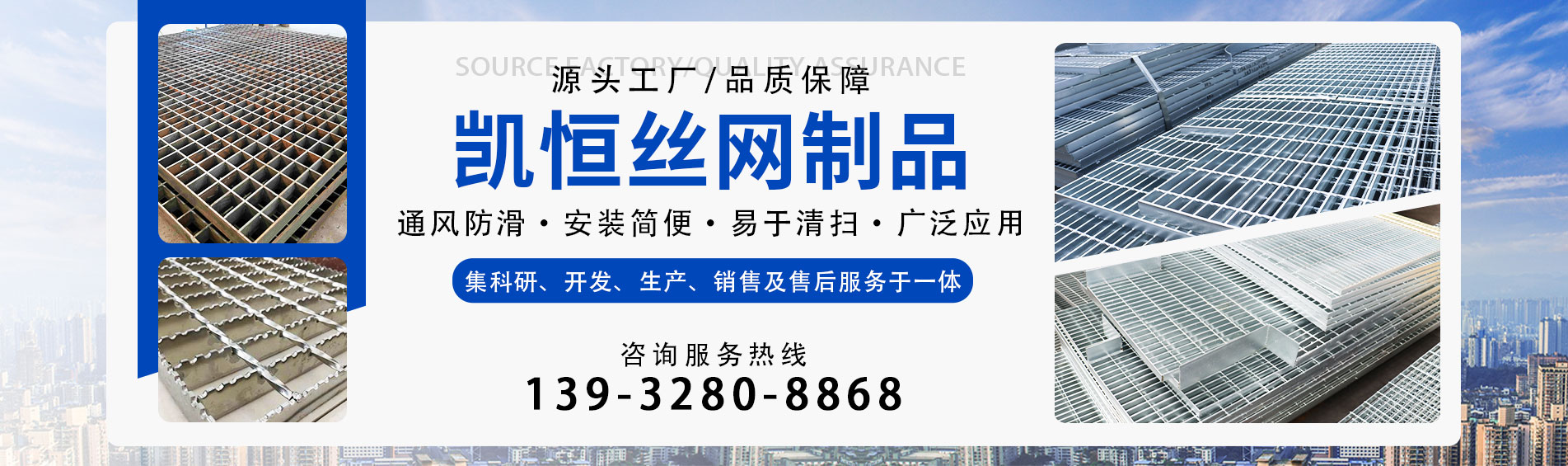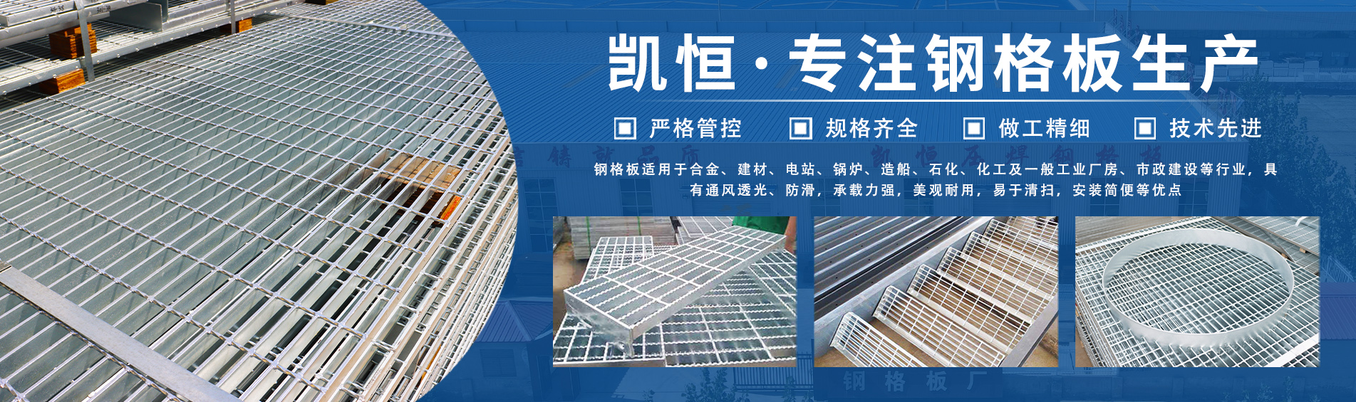 河北凯恒丝网制品有限公司位于河北省安平县境内。是一家集科研、开发、生产、销售及售后服务于一体的技术企业。主要产品有:钢格板、钢格栅 、镀锌钢格板、镀锌钢格栅、异型钢格板、钢格栅板、格栅板,等钢格板 、钢格栅系列。现有员工100余人,经验丰富的技术员20余人。